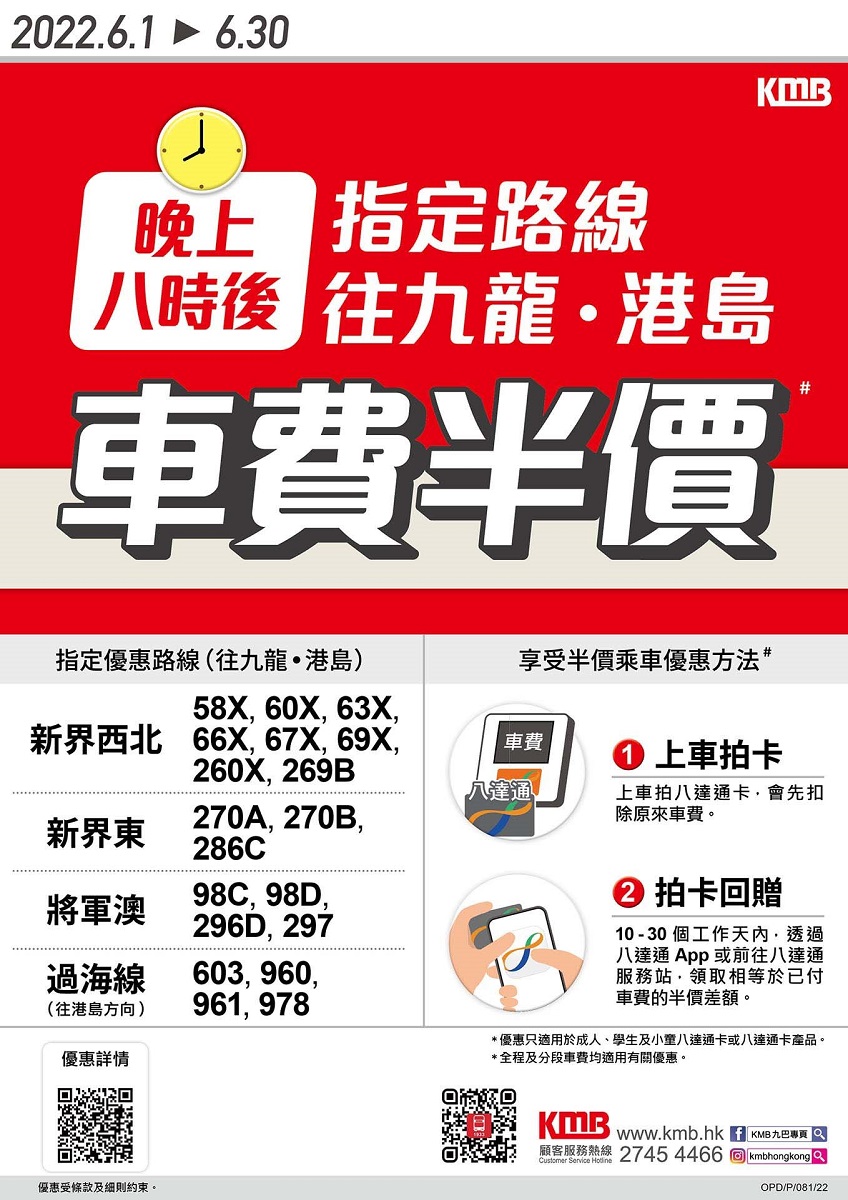如有查詢,可致電九巴顧客服務熱線 2745 4466。