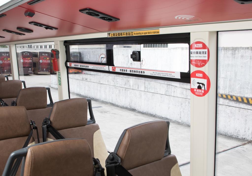 部分巴士設有橫趟式窗口,乘客可開啟加強車廂內空氣流通。 |