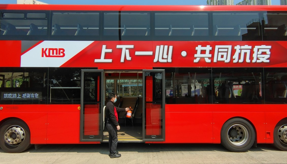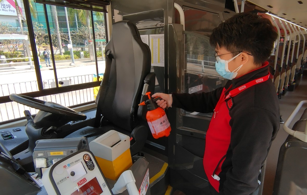 為保障乘客和員工健康安全,九巴一直多管齊下為車廂進行消毒清潔工作。鑑於本港疫情再趨嚴峻,九巴會繼續保持車廂清潔,全線車隊繼續使用消毒抗菌塗層、以稀釋漂白水及清潔劑清潔車廂、加強清潔冷氣濾塵網等。乘客亦可使用車廂內及車站的消毒潔手液,九巴期望與香港市民共同努力,積極對抗疫情。