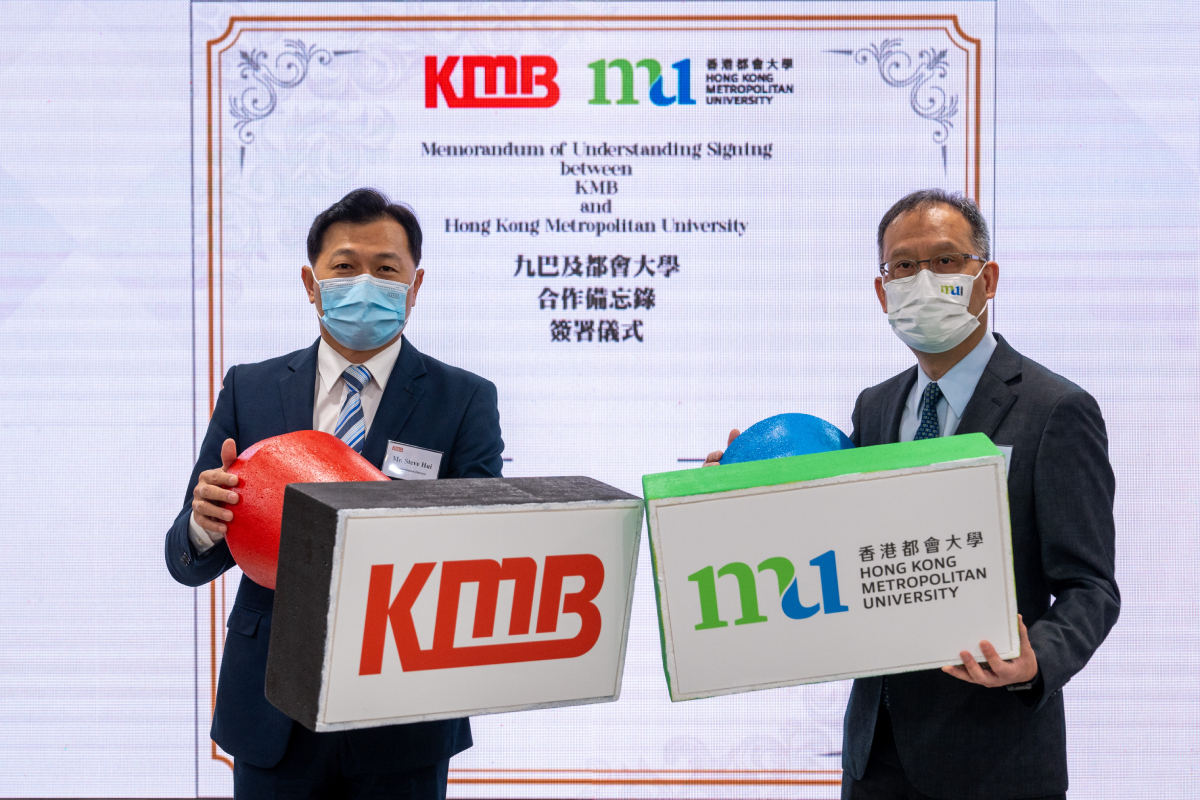 九巴助理總監(策略規劃)梁領彥(左)及中華電力企業客戶服務副總監羅國有欣然宣布,九巴與中電攜手合作,推動香港公共交通電動化。 |
