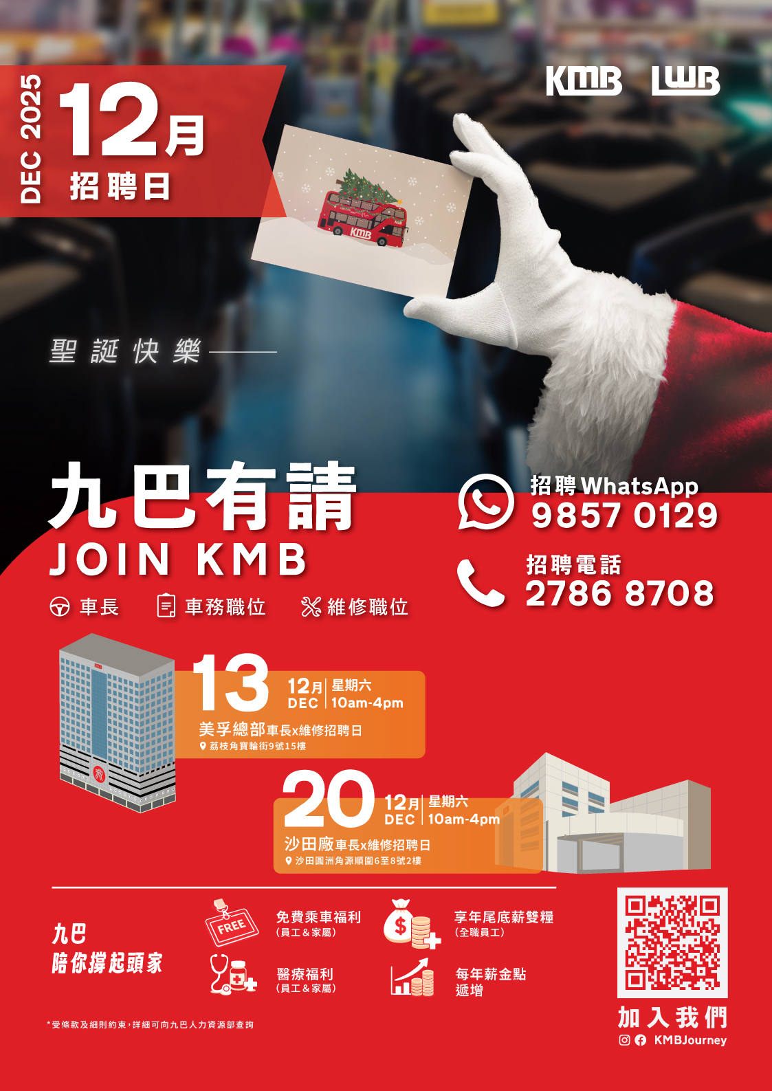填妥之申請表格可電郵至 recruitment@kmb.hk, 或傳真至34750904,或郵寄九龍九龍灣臨華街一號二樓,九龍巴士(一九三三)有限公司人力資源部招聘中心收,信封面註明「機密」。應徵者於六星期內未被邀約面試,則作落選論。