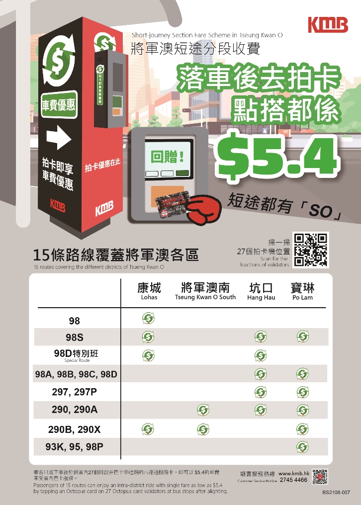 Passengers may call the KMB Customer Service Hotline on 2745-4466 or visit KMB website www.kmb.hk or App1933 for more details.