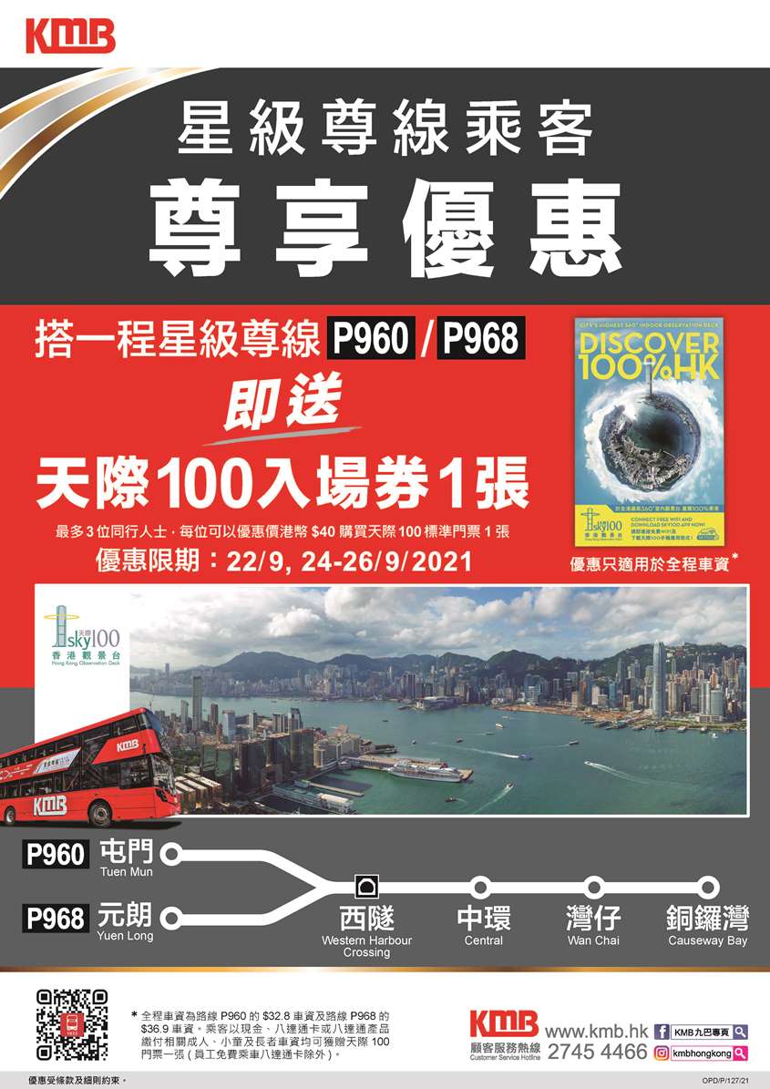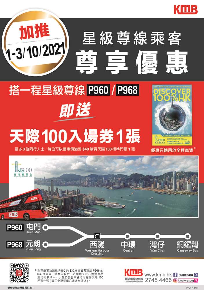九巴月票乘客除了可每日搭10程、 超過400條由九巴營運的巴士路線外,在推廣期內,更可以正價的二七折優惠,乘搭龍運機場A線、P960及P968線。有關各路線的升級體驗價詳情,可參閱條款及細則。