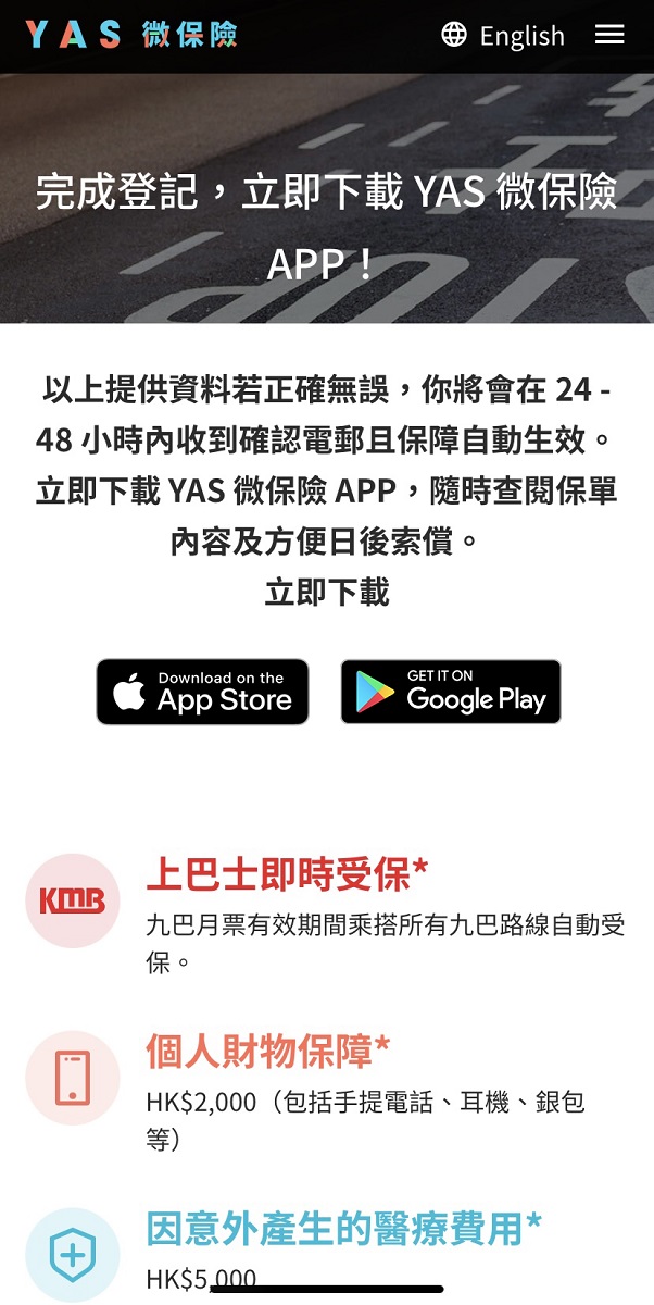 1個人財物及意外醫療保障巴士微保險「BUS RYDE」由YAS及香港忠意保險提供。