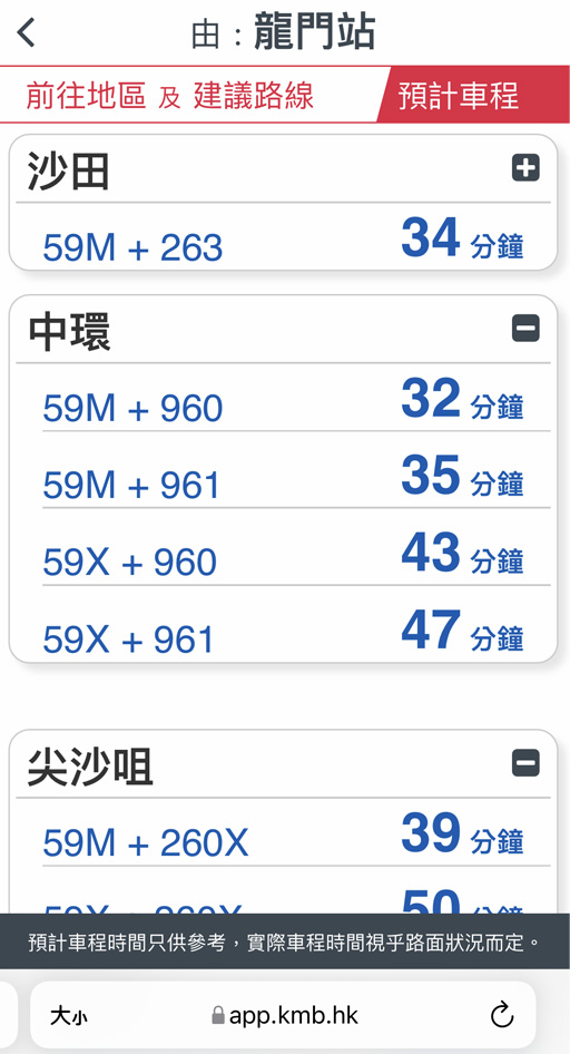 由香港科技大學開出 17:50、18:00、18:15 |