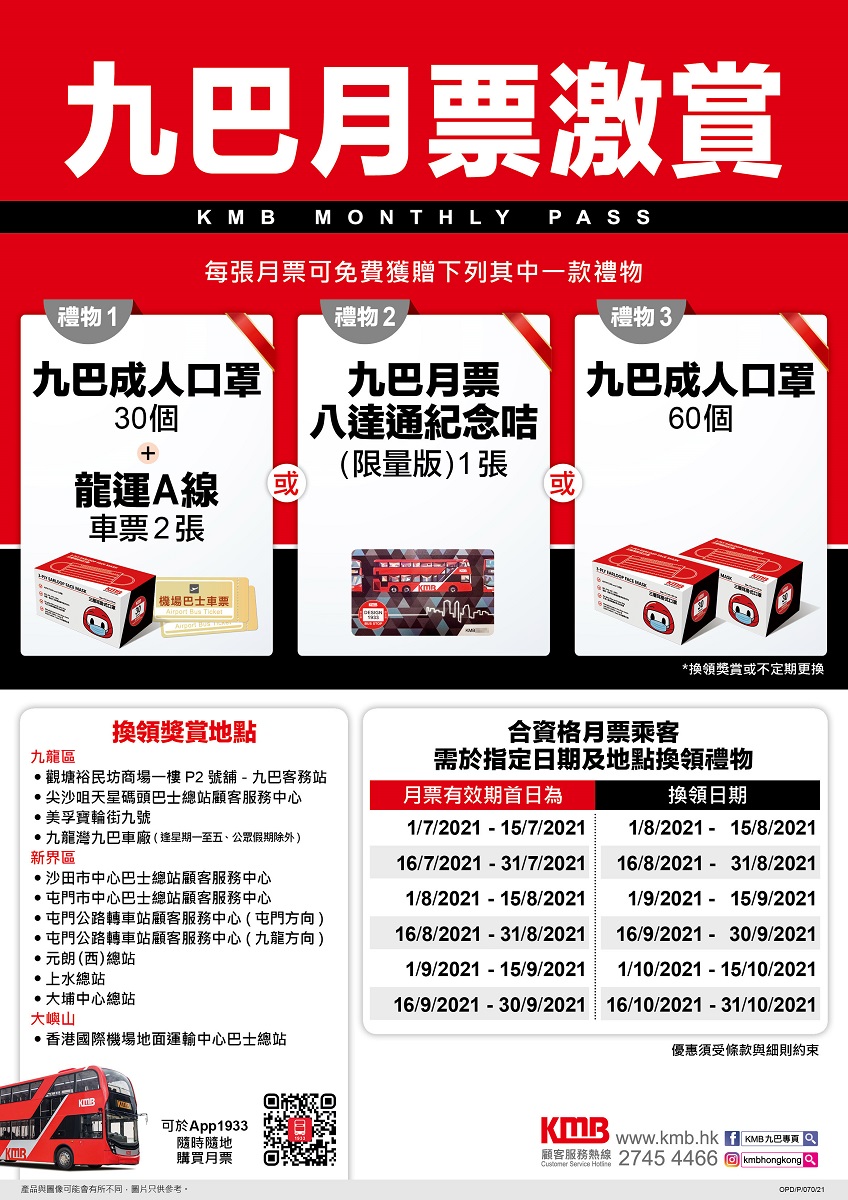 換領時間或會臨時更改,請留意換領點及九巴網頁公布。