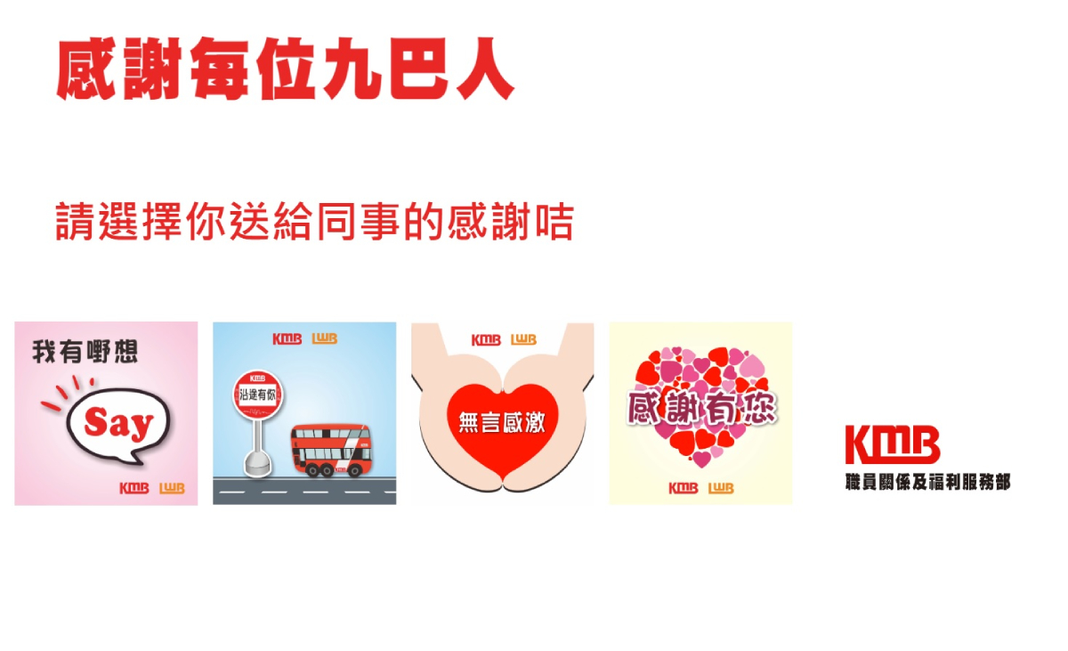 九巴亦為使用Signal和WhatsApp的朋友製作了動態貼圖,以九巴仔為主角,圖案得意,賀詞鬼馬,藉此祝願全港市民「世一」、「自肥成功」。預計一月底開放下載,詳情請留意Facebook「九巴專頁」。