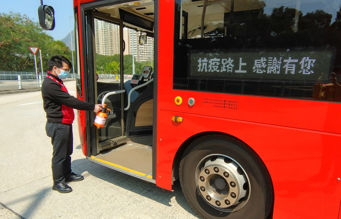 為保障乘客和員工健康安全,九巴一直多管齊下為車廂進行消毒清潔工作。鑑於本港疫情再趨嚴峻,九巴會繼續保持車廂清潔,全線車隊繼續使用消毒抗菌塗層、以稀釋漂白水及清潔劑清潔車廂、加強清潔冷氣濾塵網等。乘客亦可使用車廂內及車站的消毒潔手液,九巴期望與香港市民共同努力,積極對抗疫情。