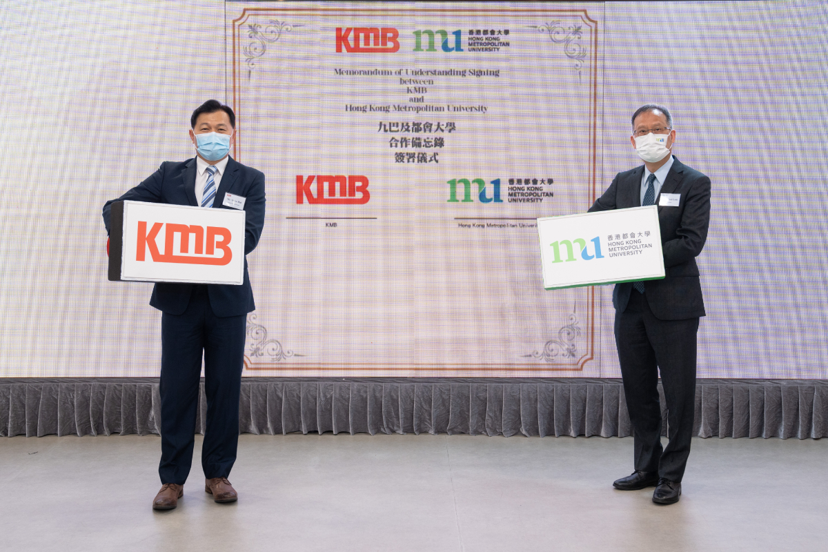 九巴助理總監(策略規劃)梁領彥(左)及中華電力企業客戶服務副總監羅國有欣然宣布,九巴與中電攜手合作,推動香港公共交通電動化。 |